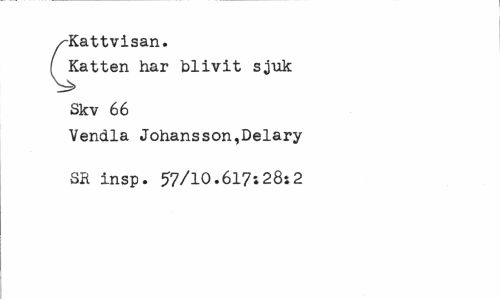 //// /"Kattvisan. //// ( Katten har blivit sjuk Sk v 66 //// Vendia Johansson,Delary SR insp. 57/l0.6l7i28i2 ////