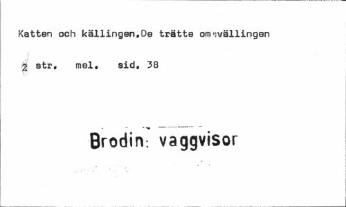 //// Katten och källingen.De trätte om<:vällingen //// i //// $ str, mel. sid. 38 //// Brodin, vaggvisor ////
