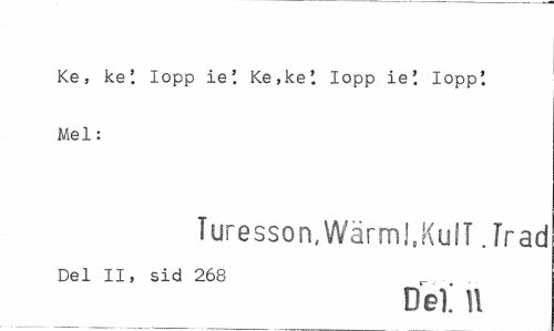 //// Ke, ke' lopp ie' Ke,ke'. lopp ie'. lopp'. Mel: //// Turesson, Wärml.KulT .Irad //// Del II, sid 268 . . //// Del. U ////