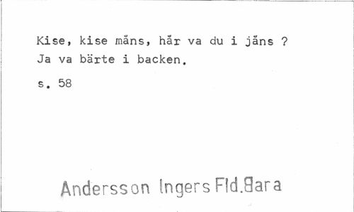 //// Kise, kise måns, hår va du i jåns ? Ja va bärte i backen. //// s. 58 //// Andersson Ingers Fld.Sara ////