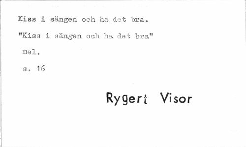//// Kiss i sängen och ha det bra. "Kisa i sängen och ha det bra" mel. s. 16 //// Rygert Visor ////