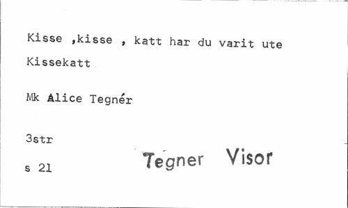 //// Kisse »kisse , katt har du varit ute Kissekatt //// Mk Alice Tegnér 3str //// , 21 Tegner Visor ////