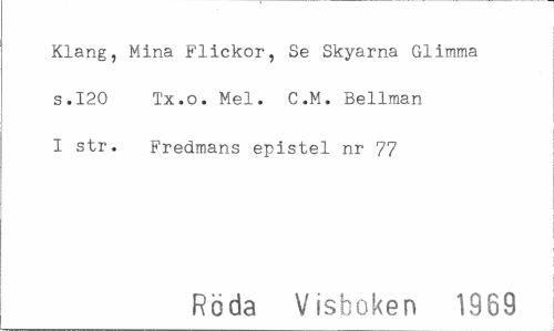 //// Klang, Mina Flickor, Se Skyarna Glimma s.120 Tx.o. Mel. C.M. Bellman I str. Fredmans epistel nr 77 //// Röda Visboken 1969 ////