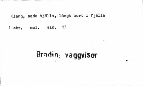 //// Klang, sade bjälla, långt bort i fjälla 1 str. mel. sid. 15 //// Brodin: vaggvisor ////