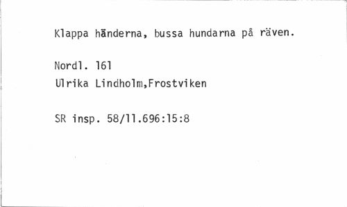 //// Klappa händerna, bussa hundarna på räven. Nordl. 161 //// Ulrika Lindholm,Frostviken SR insp. 58/11.696:15:8 ////