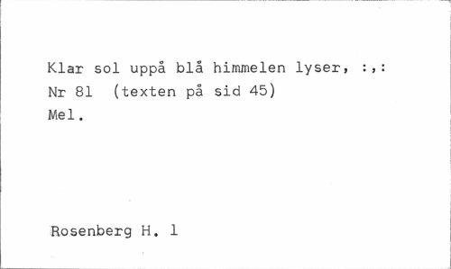 //// Klar sol uppå blå himmelen lyser, :,: Nr 81 (texten på sid 45) Mel. //// Rosenberg H. 1 ////