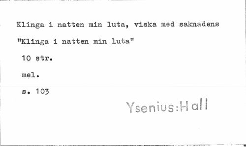 //// Klinga i natten min luta, viska ined saknadens "Klinga i natten min luta" 10 str. mel. s. 103 //// Ysenius:H o! I ////