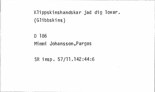 //// Klippskinshandskar jad dig lovar. (Glibbskins) //// D 186 //// Mimmi Johansson,Pargas SR insp. 57/11.142:44:6 ////