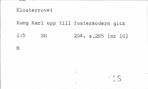 //// Klosterrovet //// Kung Karl upp till fostermodern gick 1:5 SN 204, s.285 (nr 10) //// N ////