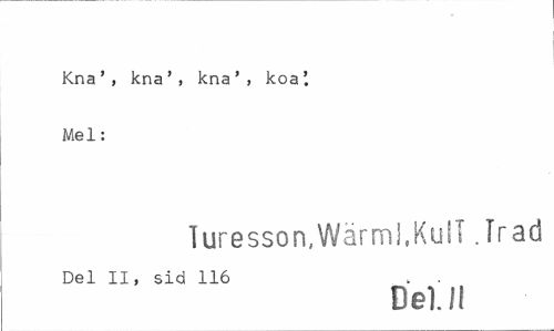 //// Kna', kna', kna', koa' Mel: //// Turesson.Wärml.KulT.Trad //// Del II, sid 116 . . //// Del. I! ////