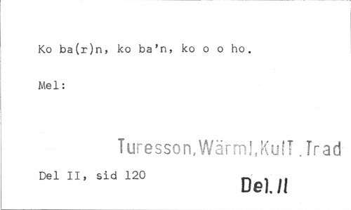 //// Ko ba(r)n, ko ba'n, ko o o ho. Mel: //// Turesson,Wärml,Kull .Irad //// Del II, sid 120 «' i »t //// Del II ////
