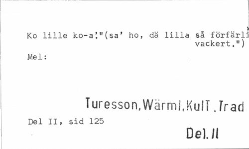 //// Ko lille ko-a'." (sa' ho, dä lilla så förfärl: //// vackert.11) //// Mel: //// Turesson,Wärml.KulT. Trad //// Del II, sid 122 //// Del.il ////