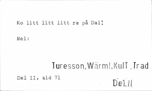 //// Ko litt litt litt ra på Dal'. Mel: //// Turesson,Wärml,Kull .Träd //// Del II, sid 71 . . //// De1.ll ////