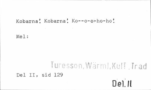 //// Kobarna'. Kobarna'. Ko--o-o-ho-ho Mel: //// Ture son.Wärml.KulT Jraä //// Del II, sid 129 //// Del. I! ////