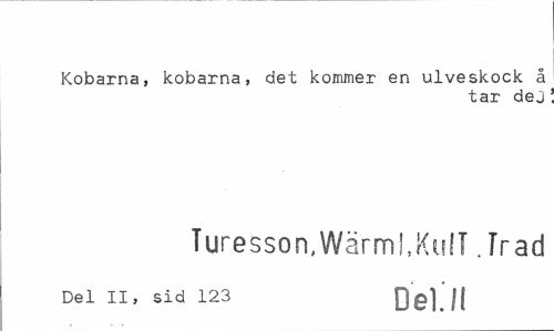 //// Kobarna, kobarna, det kommer en ulveskock å //// tar dej //// Turesson,Wärml,Ku!T Jrad //// Del II, sid 123 Del.'II ////