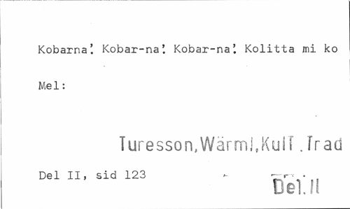 //// Kobarna! Kobar-na'. Kobar-na'. Kolitta mi ko Mel: //// Turesson,Wärml.Kulf. fr ad //// Del II, sid 123 - — rv . //// Delfi ////