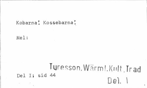 //// Kobarna'. Kossebarna'. Mel: //// Turesson, Wärmj.Kuit. frad //// Del I, sid 44 //// Del. 1 //// « ////