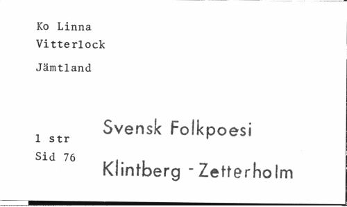 //// Ko Linna Vitterlock //// Jämtland //// Svensk Folkpoesi //// 1 str ' //// Sid 76 - //// Klintberg -Zefterholm ////
