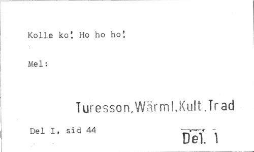 //// Kolle ko'. Ho ho ho'. Mel: //// Turesson,Wärml,Kult .Trad //// Del I, sid 44 —- //// Del 1 ////