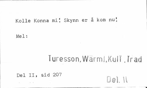 //// Kolle Konna mil Skynn er å kom nu'. Mel: //// Turesson,Wärml,Kul? .frad //// Del II, sid 207 //// . .. Del. Ii ////