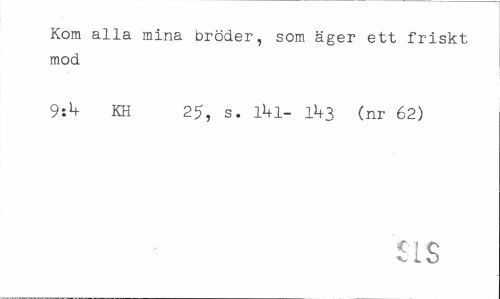 //// Kom alla mina bröder, som äger ett friskt mod //// 9:^ KH 25, s. ll+l- llf3 (nr 62) //// SIS ////