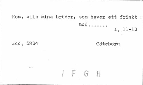 //// Kom, alla mina bröder, som haver ett friskt //// mod... //// s. 11-13 //// acc. 5834 Göteborg //// I F G H ////