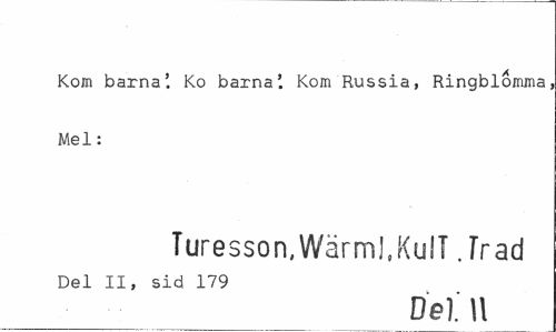 //// Kom barna'. Ko barna'. Kom Rus sia, Ringblomma; Mel: //// Turesson,Wärml.KulT Jrad //// Del II, sid 179 //// Del U ////