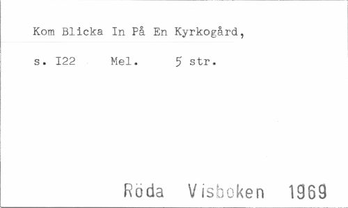 //// Kom Blicka In På En Kyrkogård, s. 122 Mel. 5 str. //// Röda V is b o ken 1989 ////