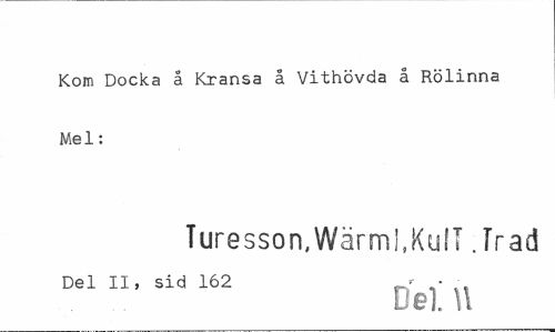 //// Kom Docka å Kransa å Vithövda å Rölinna Mel: //// Turesson,Wärm!,Kull .Irad //// Del II, sid 162 r • //// Del U ////