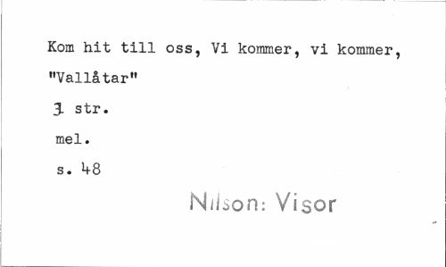 //// Kom hit till oss, Vi kommer, vi kommer, "Vallåtar" 3- str. mel. s. 1+8 //// Nilson: Visor ////