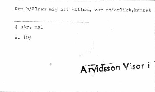 //// Kom hjälpen mig att vittna, var rederlikt,kamrat //// 4 str. mel s. 103 //// Ärvi(Jsson Visor i ////