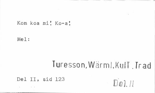 //// Kom koa miKo-a'. Mel: //// Turesson,Wärml.KulT .Träd //// Del II, sid 123 r . ,, //// De]. Il ////