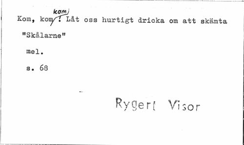 //// kOAty //// Kom, kom/^Låt oss hurtigt dricka om att skämta "SkålarneM mel. s. 68 //// Rygerf Visor ////