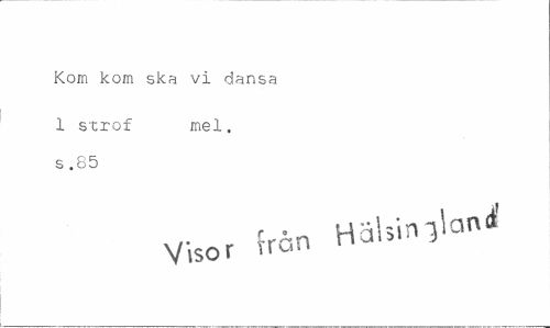 //// Kom kom ska vi dansa //// 1 strof mel, //// s .85 //// Halsband' //// Visor trän ////