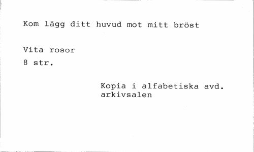 //// Kom lägg ditt huvud mot mitt bröst //// Vita rosor 8 str. //// Kopia i alfabetiska avd. arkivsalen ////