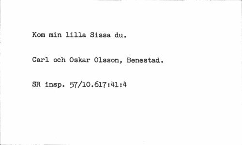 //// Kom min lilla Sissa du. //// Carl och Oskar Olsson, Benestad. //// SR insp. 57/10.617:41:4 ////