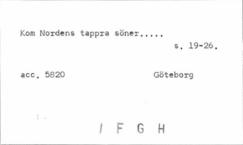 //// Kom Nordens tappra söner... //// s. 19-26. //// acc. 5820 Göteborg //// I F G H ////