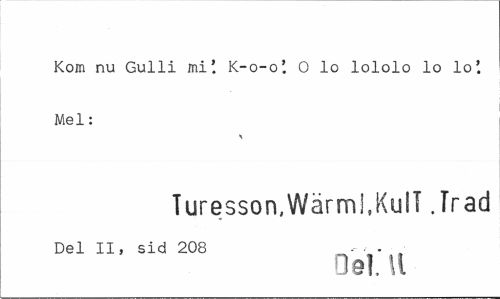 //// Kom nu Gulli miK-o-o'. 0 lo lololo lo lo'. Mel: //// Turesson,Wärm!,Kull .Träd //// Del II, sid 208 - - , //// Oel.U ////