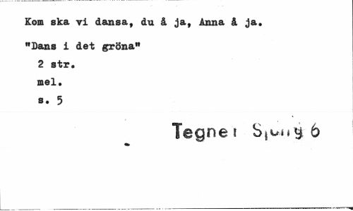 //// Kom ska vi dansa, du å ja, Anna å ja. //// "Dans i det gröna" 2 str. mel. s. 5 //// Tegne ? StuM y 6 ////