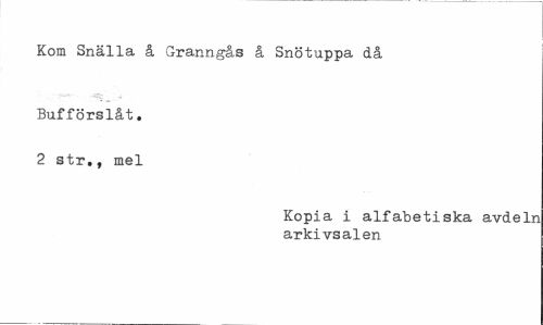 //// Kom Snälla å Granngås å Snötuppa då //// Bufförslåt. 2 str., mel //// Kopia i alfabetiska avdeln arkivsalen ////