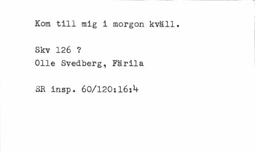 //// Kom till mig i morgon kväll. Skv 126 ? //// Olle Svedberg, Färila SR insp. 60/120:16:^ ////