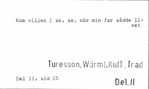 //// Kom viljen I se, se, när min far sådde linet //// Turesson,Wärm!,Kull .Trad //// Del II, sid 15 ^ ////