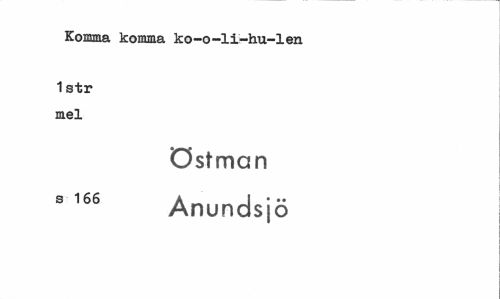 //// Komma komma ko-o-li-hu-len //// 1 str mel //// östman 3 166 Anundsjö ////