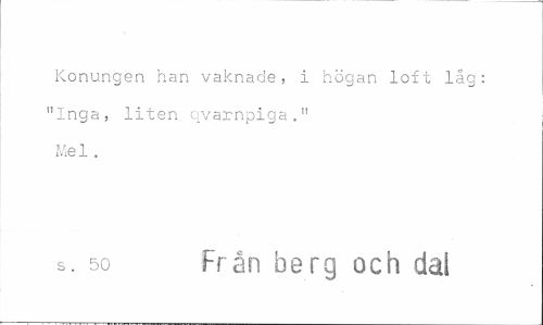 //// Konungen han vaknade, i högan loft låg: "Inga, liten qvarnpiga." Mel. //// s. 50 Från berg och dal ////