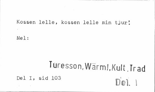 //// Kossen lelle, kossen lelle min tjur'. Mel: //// Turesson, Wärml, Kult. Trad //// Del I, sid 103 ^ ////
