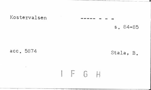 //// Kostervalsen --- - - //// s. 84-85 //// acc- 5874 Stala, B. //// I F G H ////