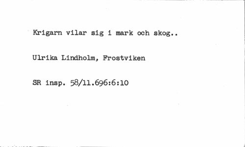 //// Krigarn vilar sig i mark och skog.. Ulrika Lindholm, Prostviken SR insp. 58/11.696:6:10 ////