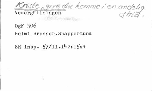 //// ^^ V^ 6 /iom/7?e /er? rmc/sJto Vedergällningen. //// DgF 306 //// Helmi Brenner.Snappertuna SR insp. 57/H. 1^2; 15:^ ////