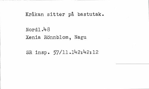 //// Kråkan sitter på bastutak. Norell A8 //// Xenia Rönnblom, Nagu SR insp. 57/H.lb2ik2tl2 ////
