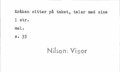 //// Kråkan sitter på taket, talar med sina 1 str. mel. s. 35 //// Nilson: Visor ////